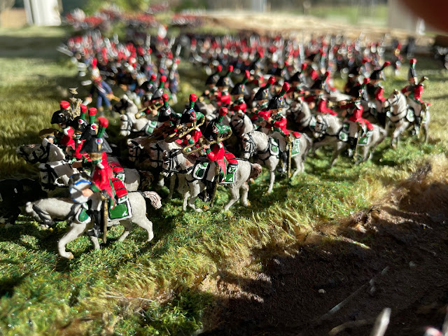 After several weeks without any visible progress, I'm pleased to reveal the next phase of the project, with the production of two new sections around La Belle Alliance containing there four Service Squadrons protecting the Emperor and two companies of Foot Artillery of the Old Guard.